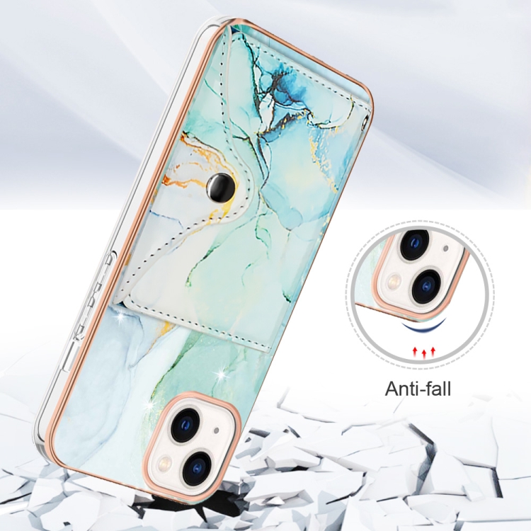 Estuche para Teléfono iPhone 15 con Ranura para Tarjeta Imd Patrón Mármol (Verde)