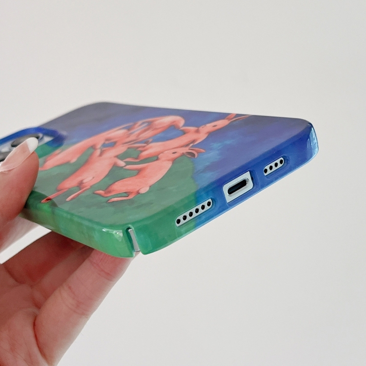 Estuche rígido para teléfono iPhone 15 con Película artesanal de dibujos animados (Conejo Bailando)