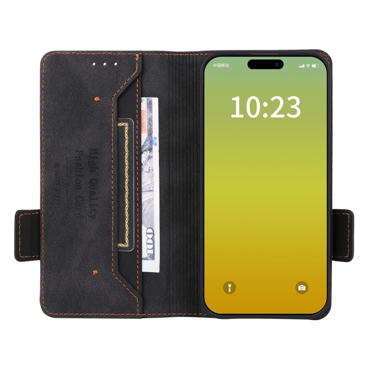 Funda para iPhone 15 de Cuero con Cierre Magnético para Teléfono (Negro)