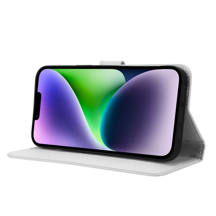 Funda para iPhone 15 Cuero Textura de Diamante (Blanco)