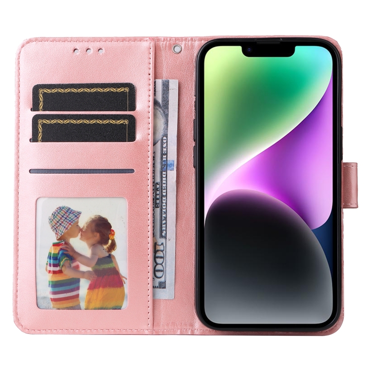 Funda de Teléfono iPhone 15 Cuero Estampado Girasol en Relieve (Rosa)