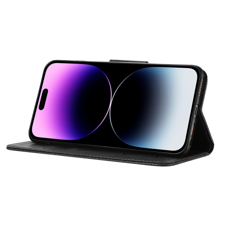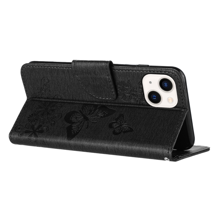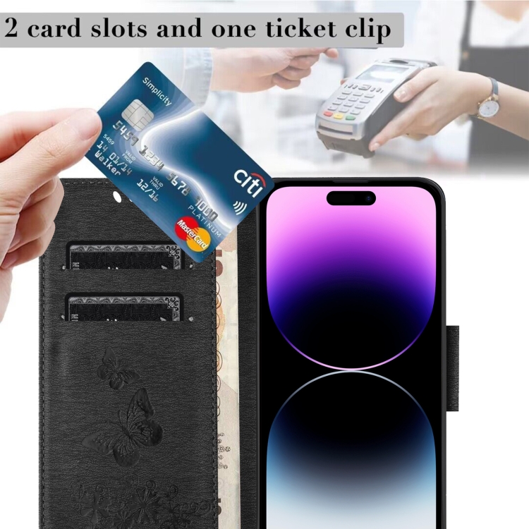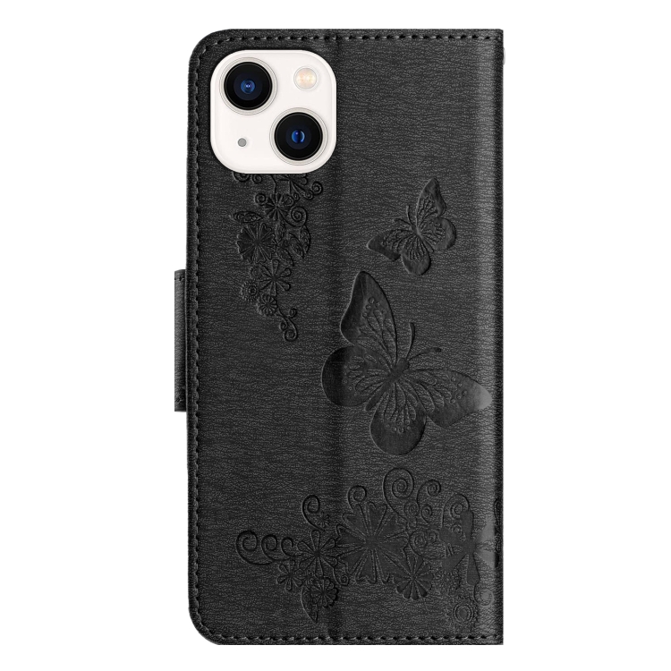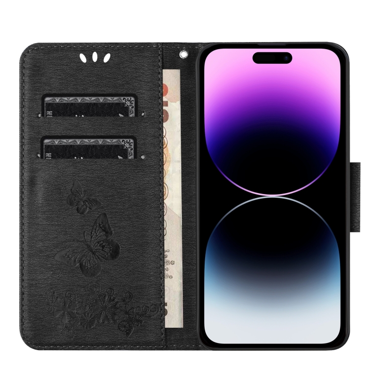 Funda de Teléfono para iPhone 15 Cuero con Tapa En Relieve de Mariposa (Negro)