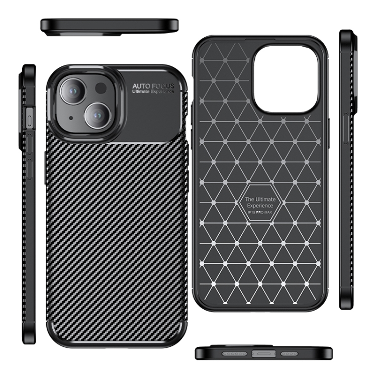Funda de Teléfono TPU iPhone 15 a Prueba de Golpes con Textura de Fibra de Carbono (Negro)