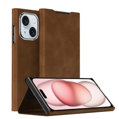For iPhone 15 Napa Texture Leather Magnetic Case with Stand (Brown)