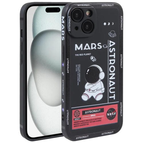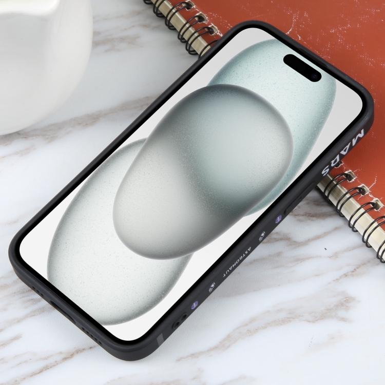 Funda para Teléfono iPhone 15 Silicona Borde Recto Patrón Astronauta (Negro)