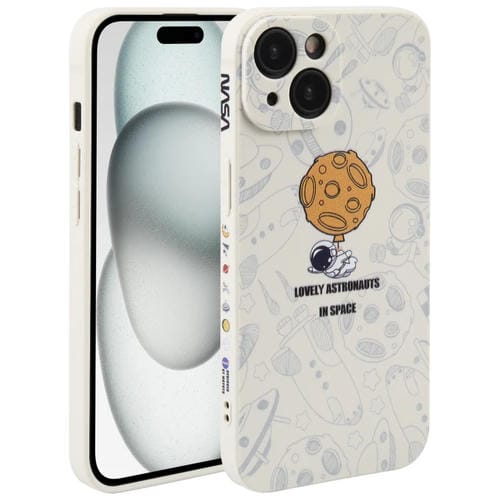 Funda para Teléfono iPhone 15 Silicona Borde Recto Patrón Astronauta (White)