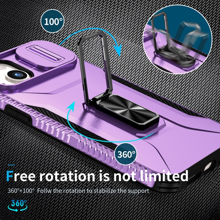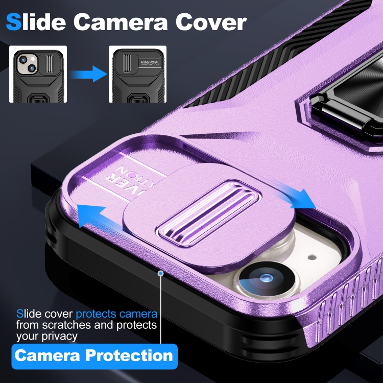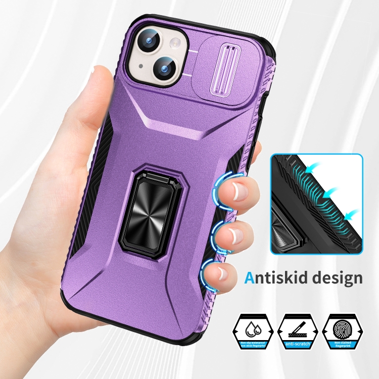Funda para Teléfono iPhone 15 con Soporte Deslizante para Escudo de Levas (Púrpura)