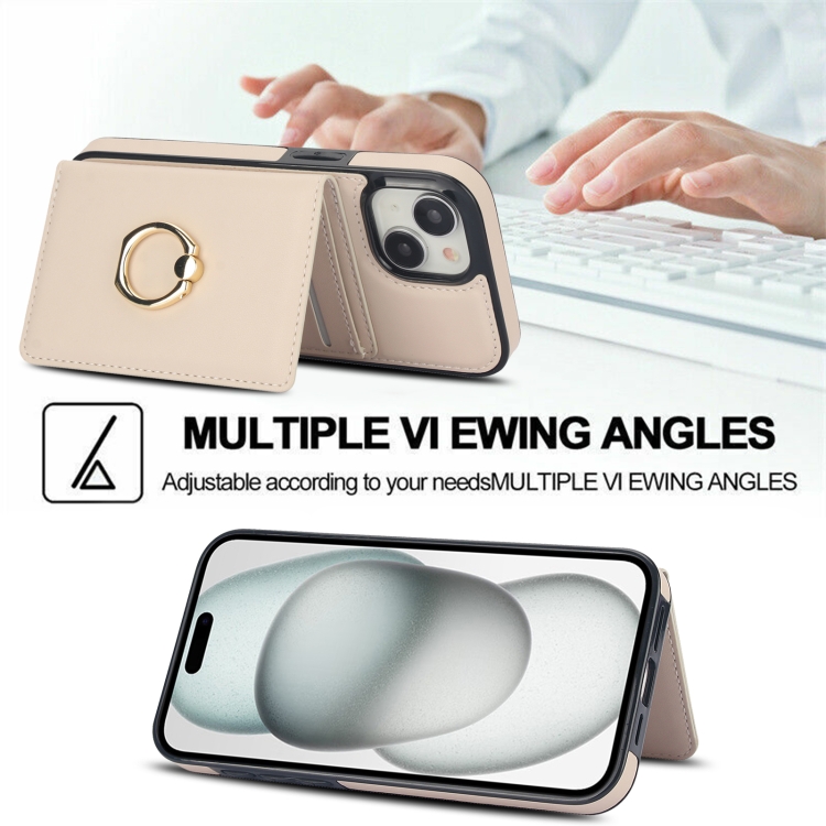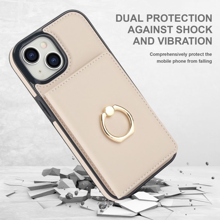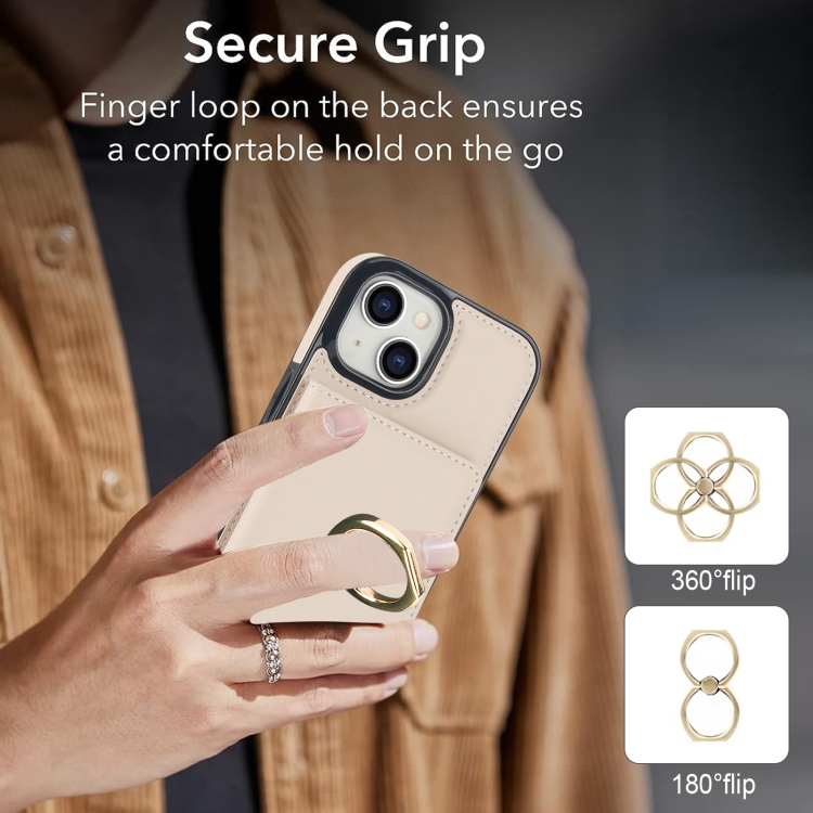 Funda para Teléfono iPhone 15 con Soporte para Anillo y Tarjeta Antirrobo Rfid (Blanco)