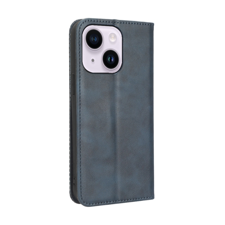 Funda para Teléfono iPhone 15 Cuero Textura Retro Hebilla Magnética (Azul)