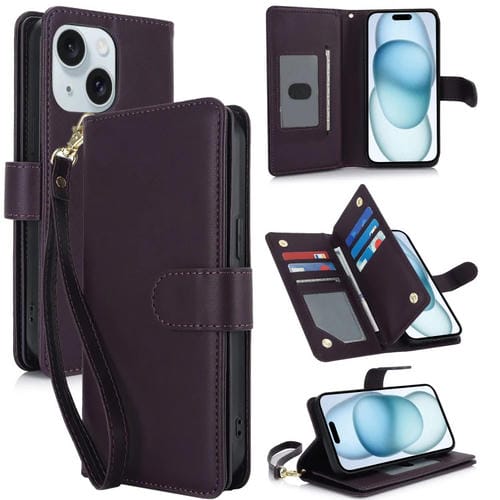 Funda para Teléfono iPhone 15 Cuero Rfid Billetera MultiTarjeta (Púrpura Oscuro)