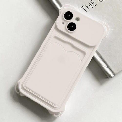 Funda para Teléfono TPU Esmerilado para iPhone 15 con Ranura para Tarjeta a Prueba de Golpes (Blanco)
