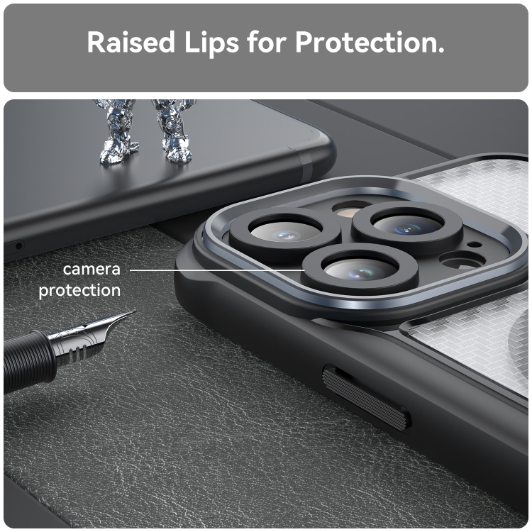 Funda para Teléfono iPhone 15 Translúcida Magsafe con Textura de Fibra de Carbono (Negro)