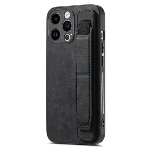 For iPhone 15 Retro Wristband Holder Leather Back Case (Black)