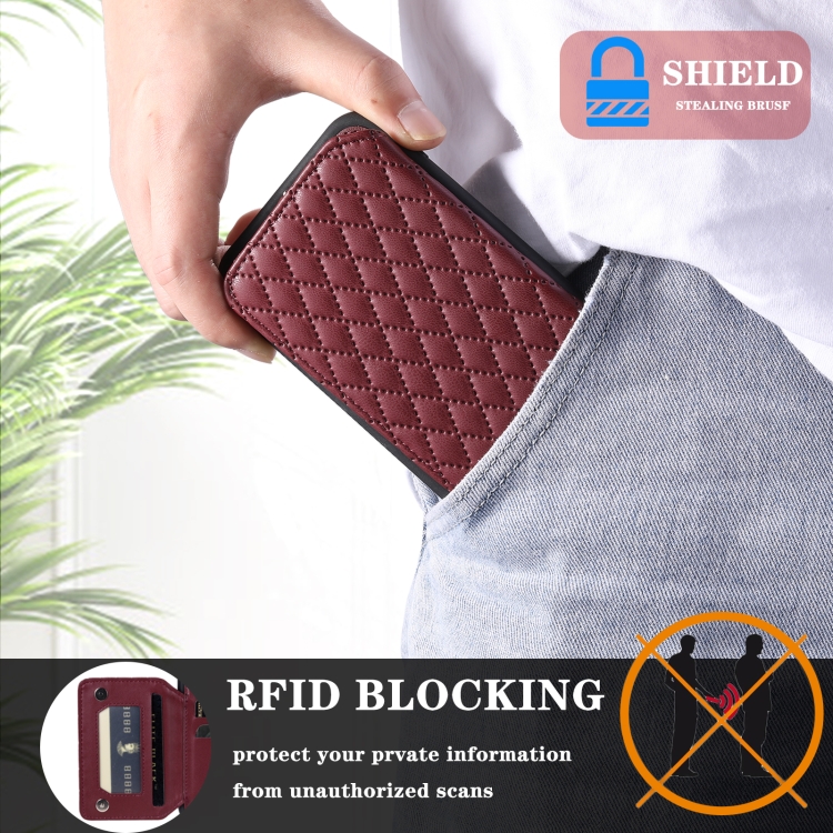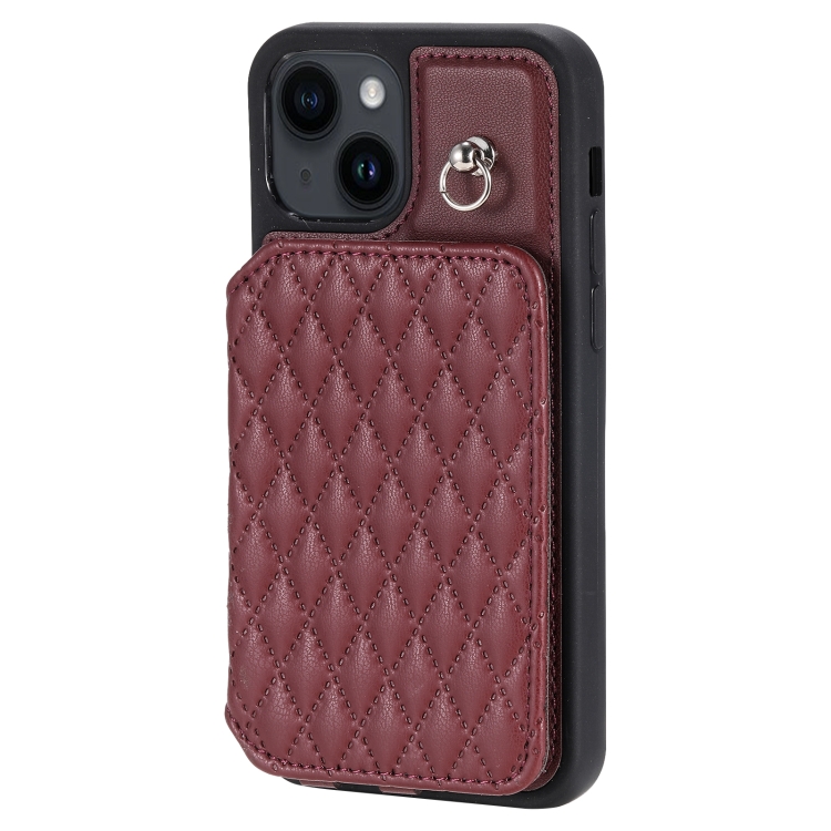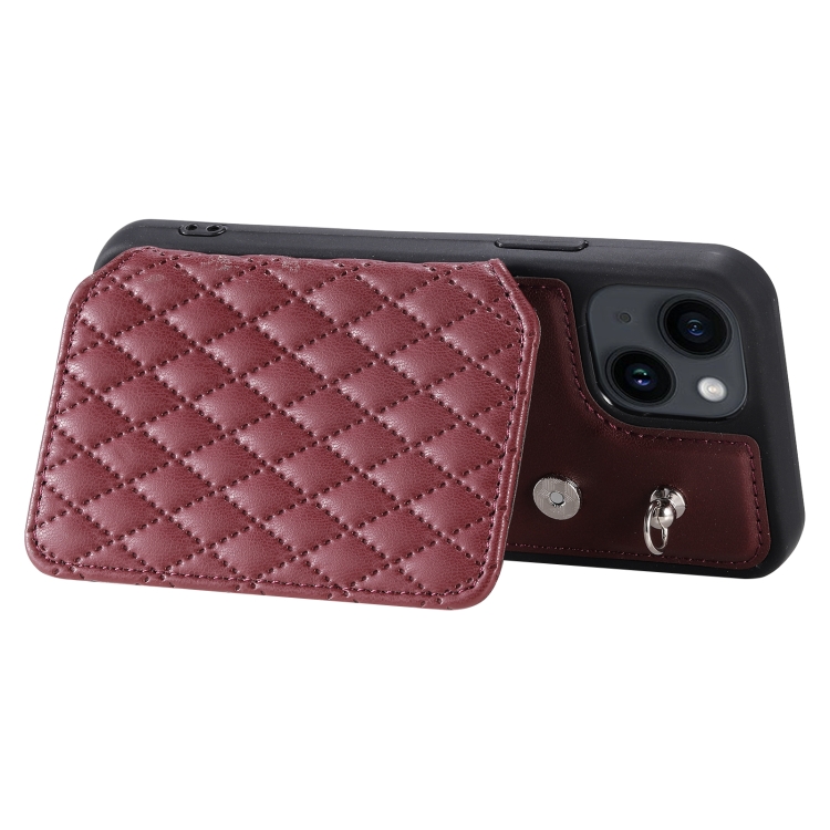 Funda para Teléfono iPhone 15 Grid Texture Card Bag con Cordón (Rojo)