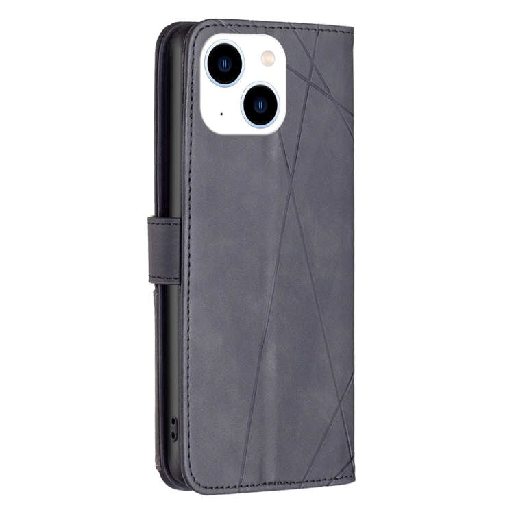 Funda de Cuero para iPhone 15 Hebilla Magnética Rombo Textura (Negro)