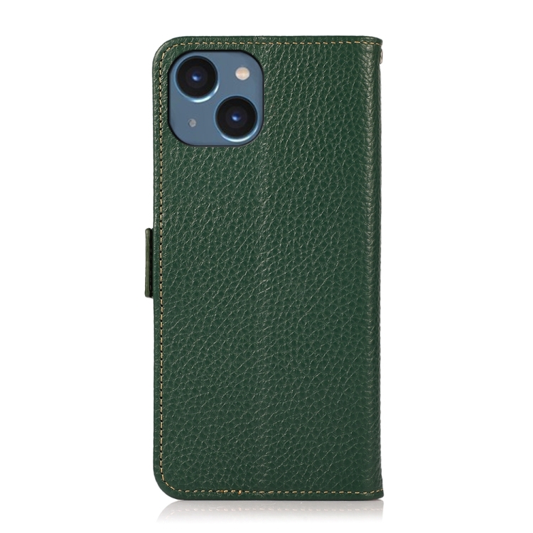 Funda para Teléfono Khazneh iPhone 15 Cuero Genuino Litchi Lateral Magnético (Verde)