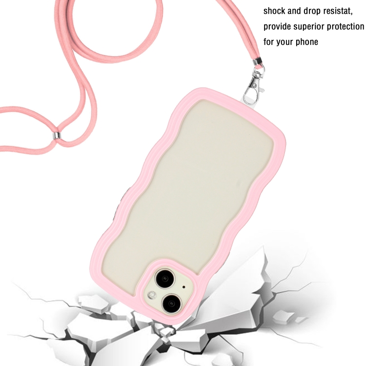 Funda para iPhone 15 Lanyard Candy Color Wave TPU Clear PC (Rosa)