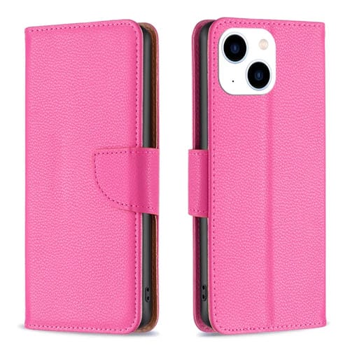 Funda de Cuero Flip para iPhone 15 Litchi Texture Pure Color (Rosa Roja)