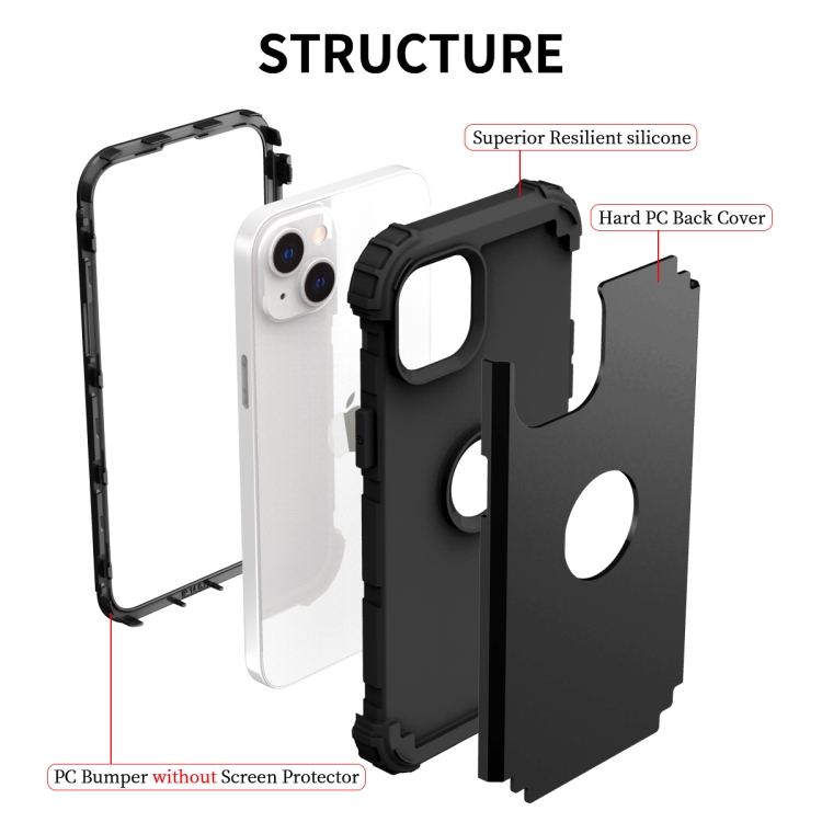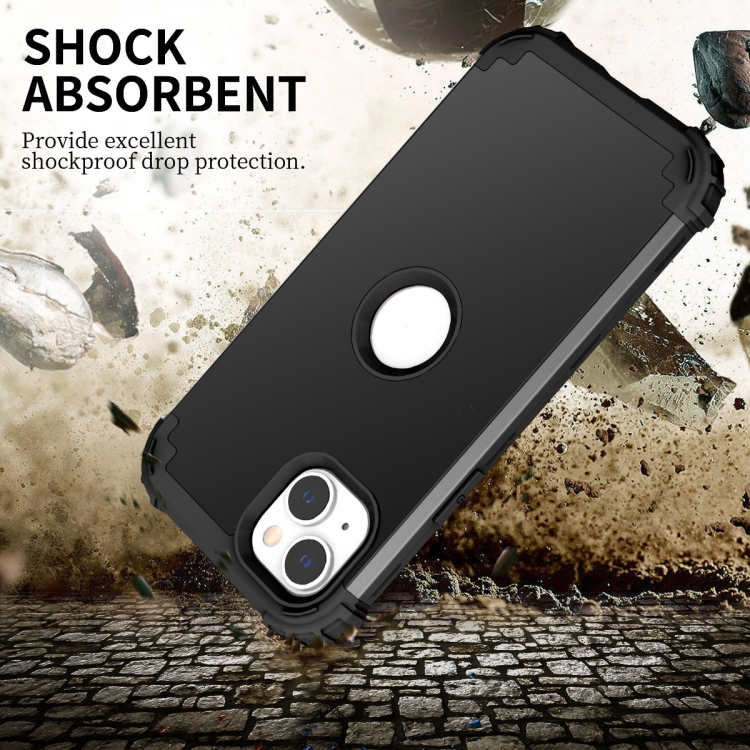 Funda de teléfono híbrida 3 en 1 para iPhone 15 Plus silicona a prueba de golpes PC (Negro)