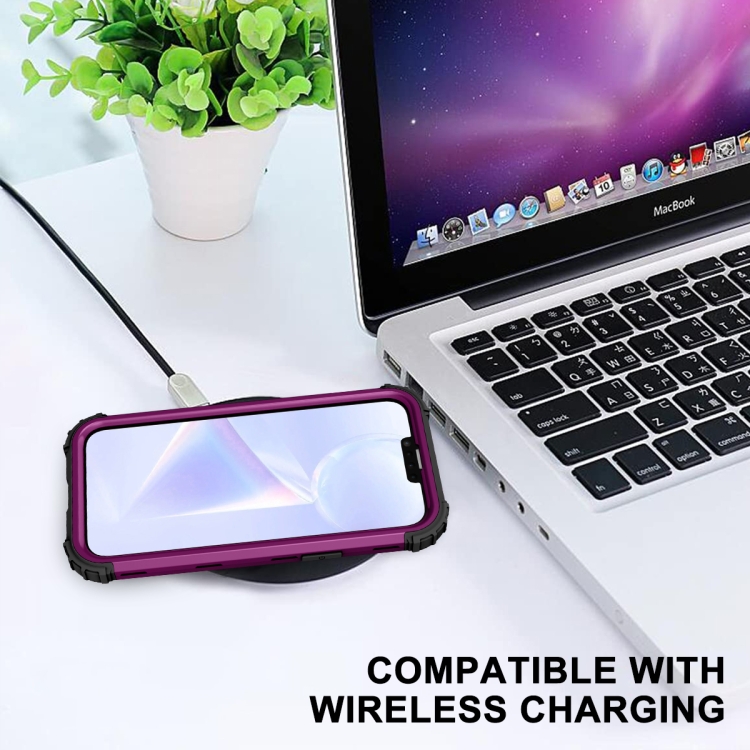 Funda de teléfono híbrida 3 en 1 para iPhone 15 Plus silicona a prueba de golpes PC (Púrpura)