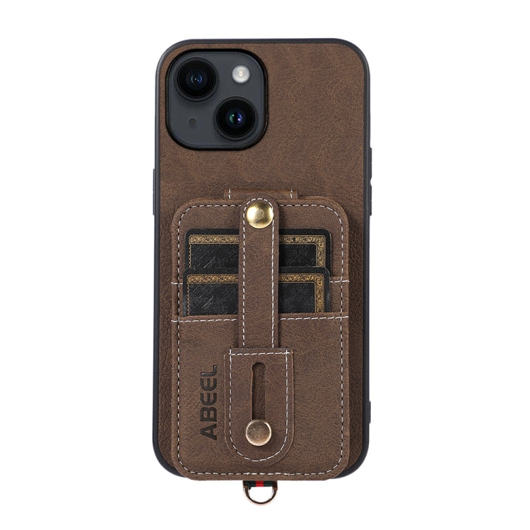 Funda para iPhone 15 Plus Abeel Litchi Texture Card Bag PU Case (Caqui)