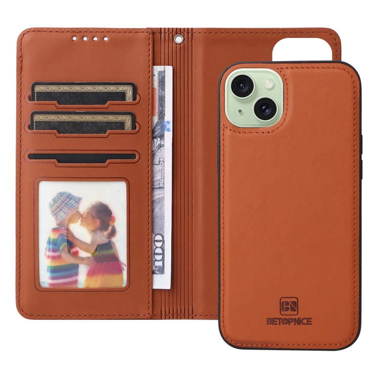 Funda para iPhone 15 Plus Betopnice Bn-005 2 en 1 Cuero Desmontable (Marrón)