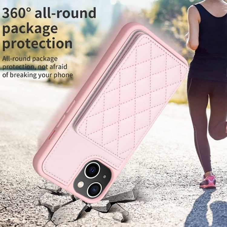 Funda para Teléfono Bf25 Square Plaid Card Bag Holder para iPhone 15 Plus (Rosa)