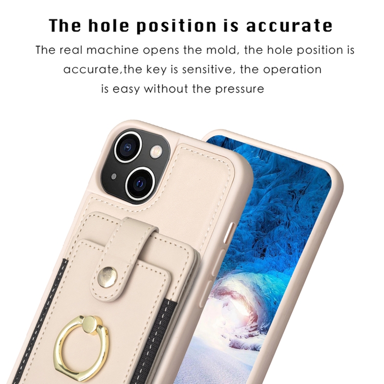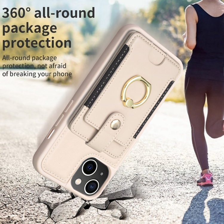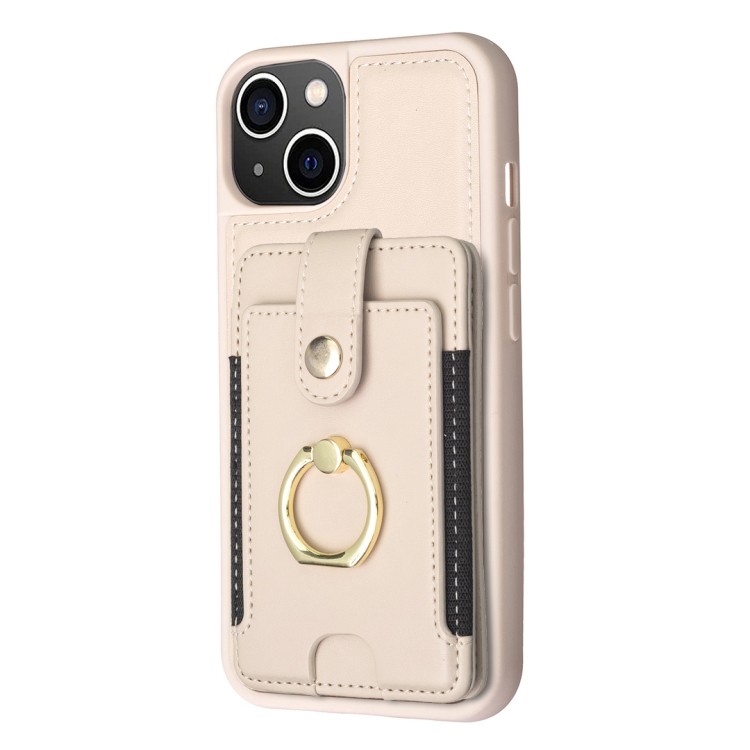 Funda para Teléfono iPhone 15 Plus Bf27 con Soporte para Tarjeta y Anillo de Metal (Beige)