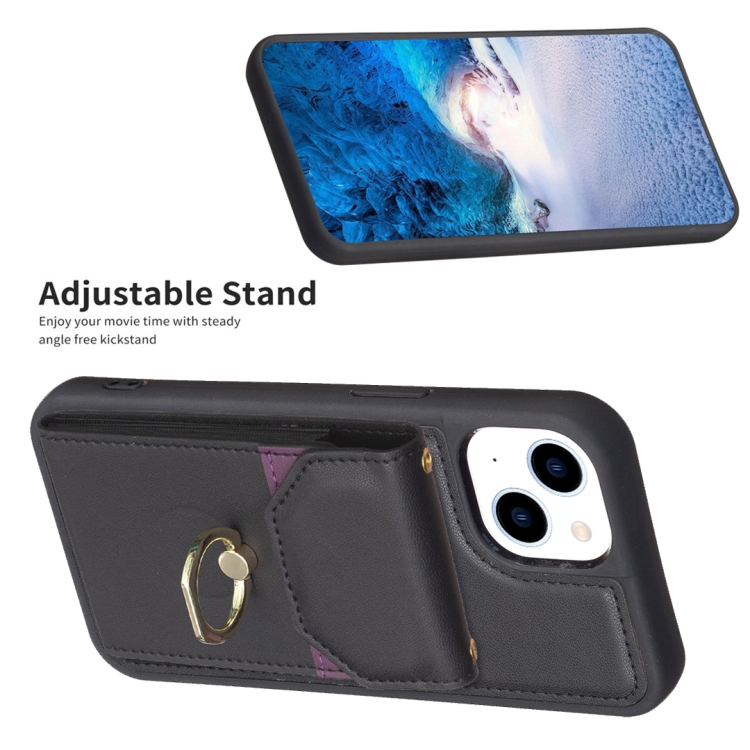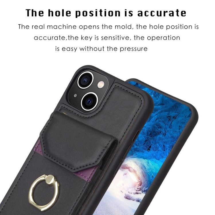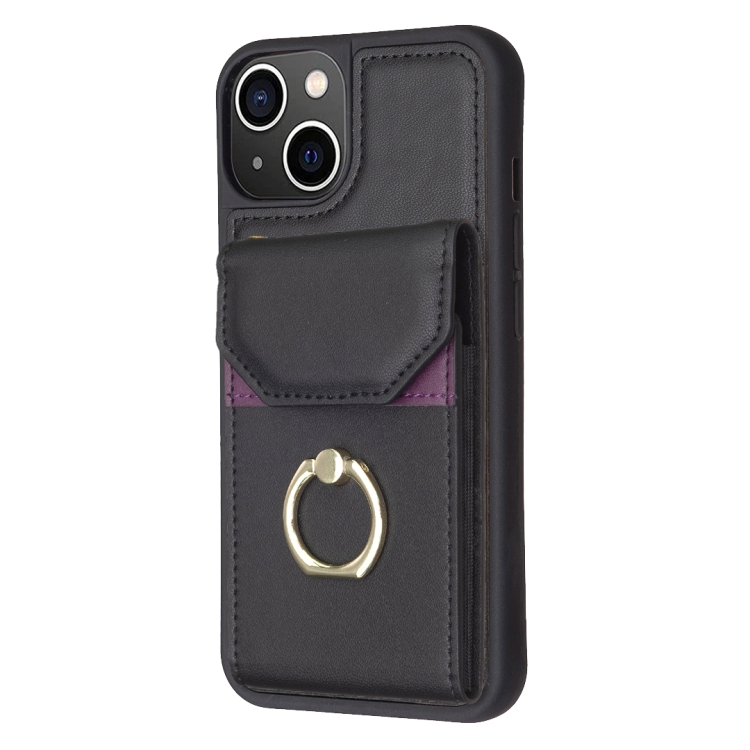 Funda para Teléfono iPhone 15 Plus Bf29 con Soporte para Anillo y Bolsa para Tarjeta (Negro)