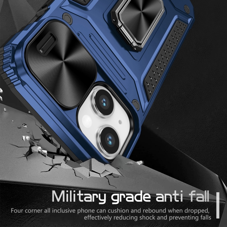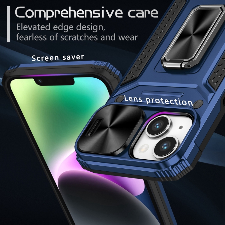 Funda para iPhone 15 Plus Camshield Robot TPU Hybrid PC Phone Case (Azul)