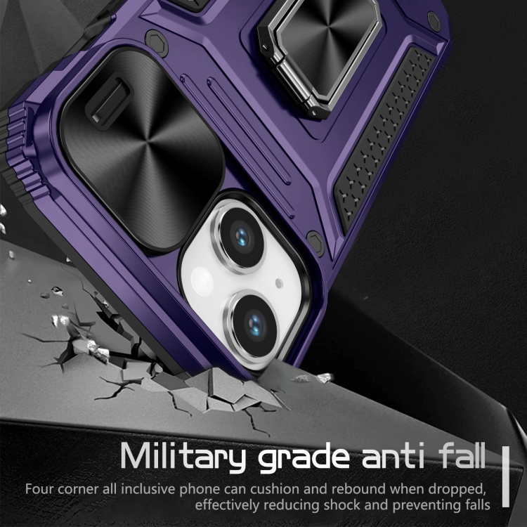 Funda para iPhone 15 Plus Camshield Robot TPU Hybrid PC Phone Case (Púrpura)