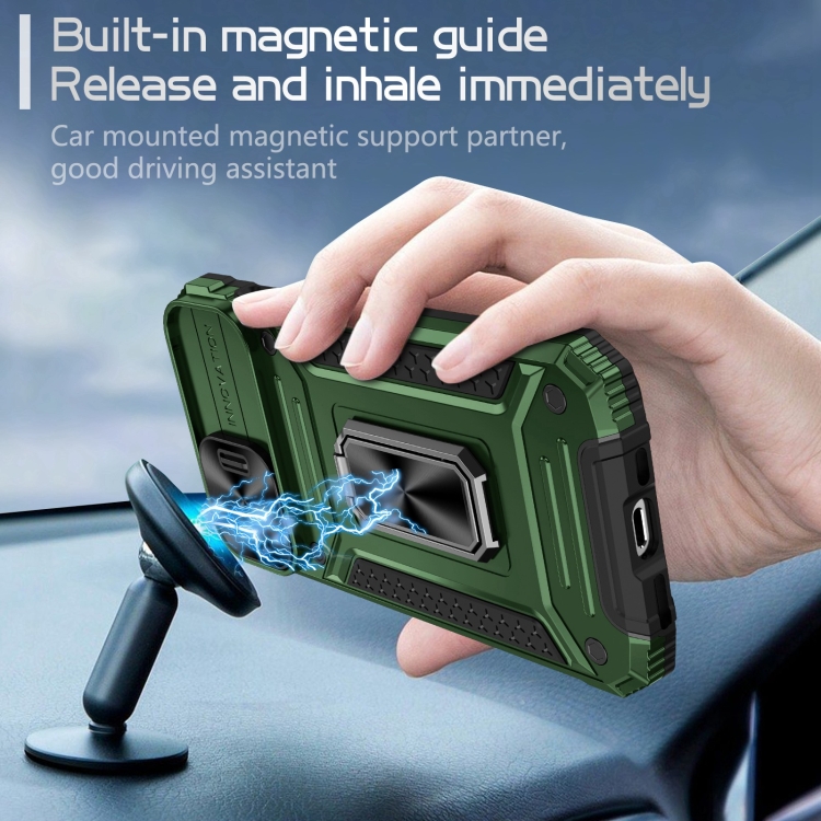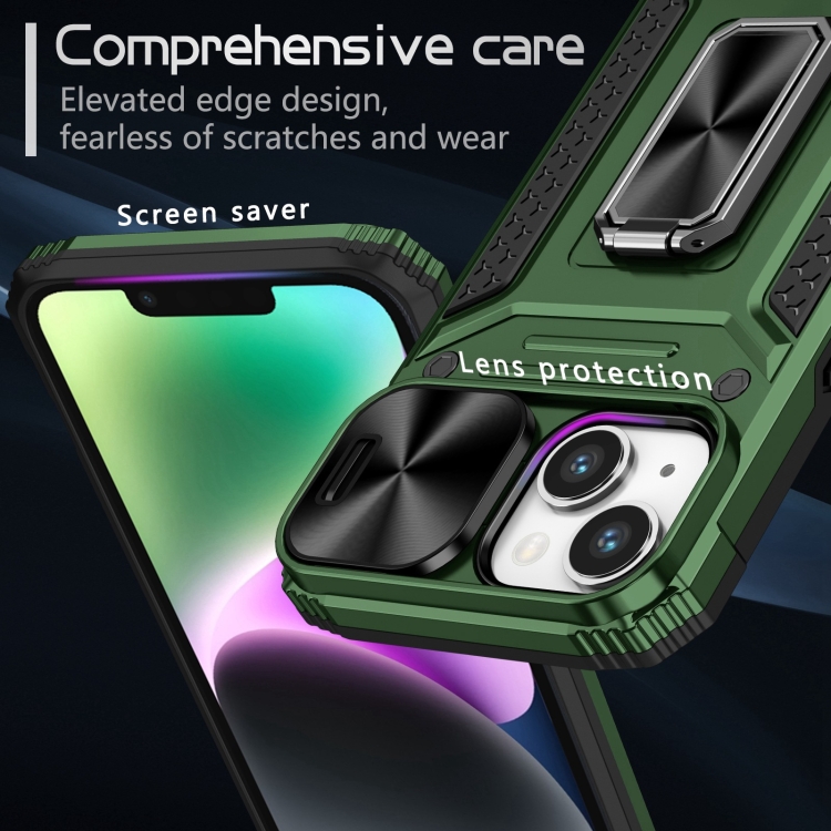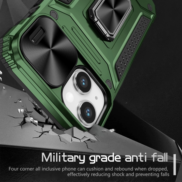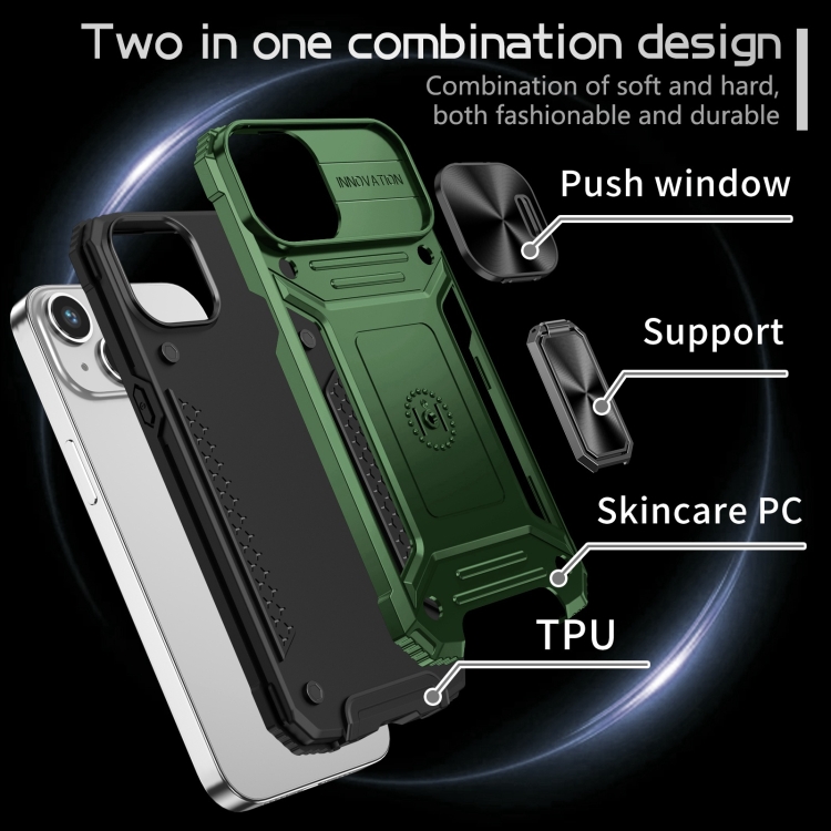Funda para iPhone 15 Plus Camshield Robot TPU Hybrid PC Protección (Verde)