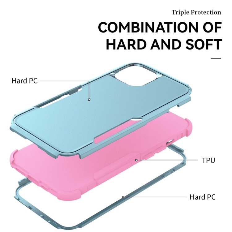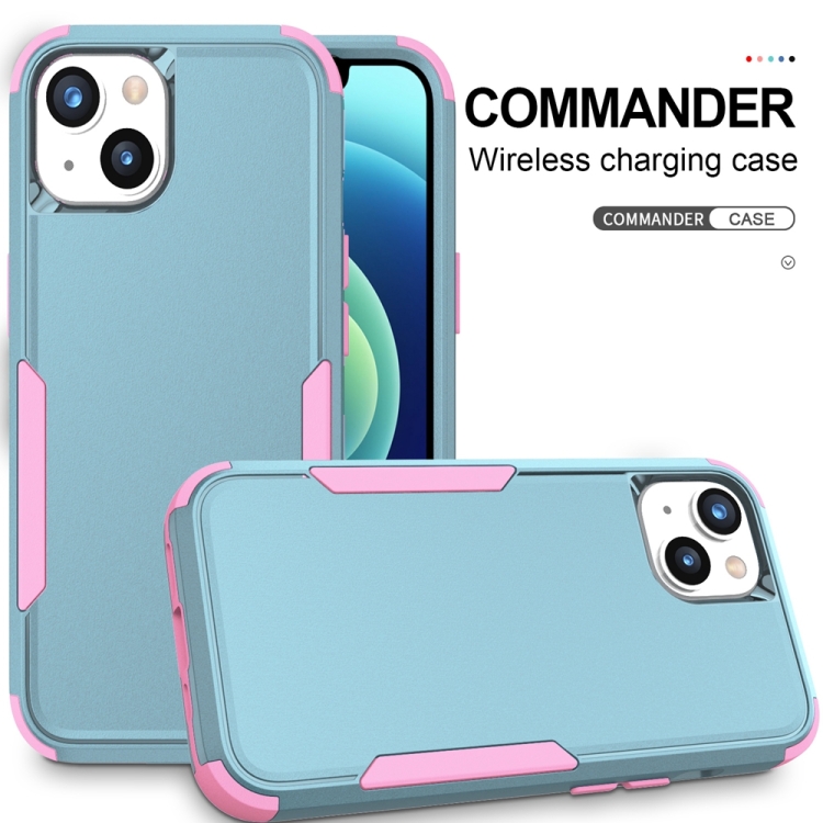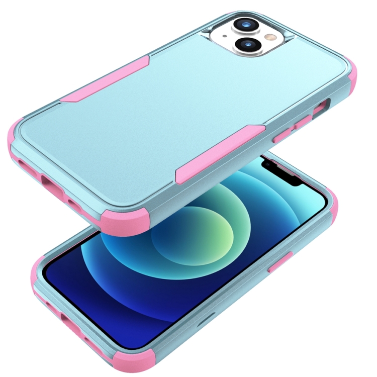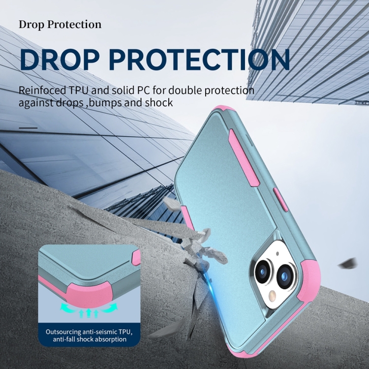 Funda para Teléfono iPhone 15 Plus Commuter a Prueba de Golpes TPU + PC (Gris Verde + Rosa)