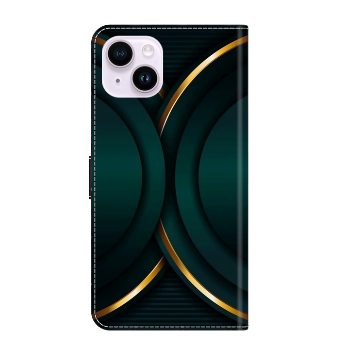 Funda Protectora de Cuero para iPhone 15 Plus Crystal 3D a Prueba de Golpes (Contorno Dorado)