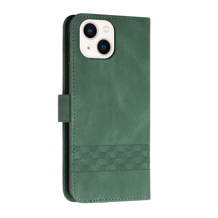 For iPhone 15 Plus Cubic Skin Feel Leather Flip Phone Case Cover (Green)