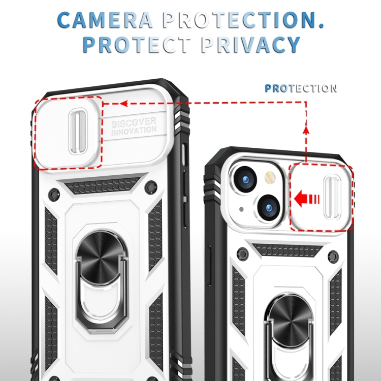 Estuche para Teléfono iPhone 15 Plus con Soporte Deslizante Camshield (Blanco + Negro)