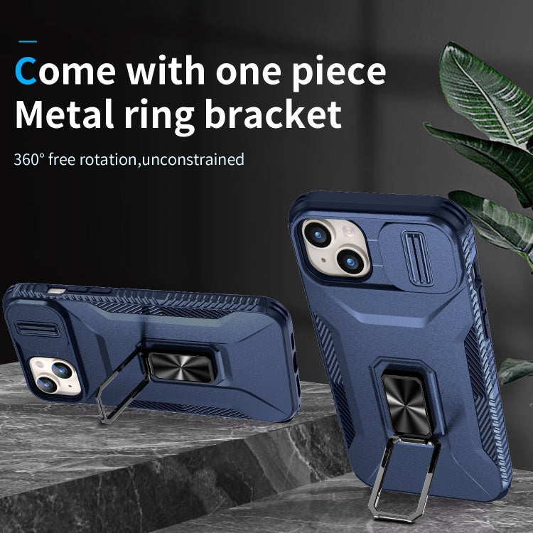 Estuche para teléfono iPhone 15 Plus con soporte deslizante para levas (Azul)