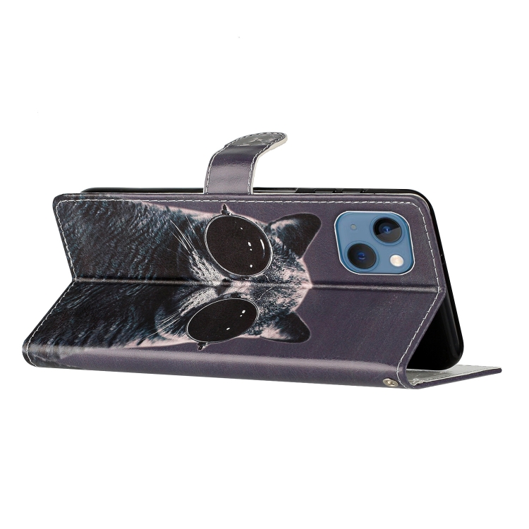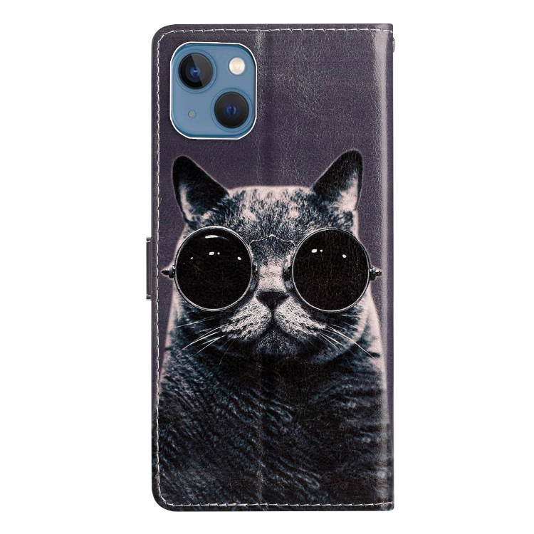Estuche para Teléfono iPhone 15 Plus Cuero Dibujo Coloreado Gafas de Sol Cat