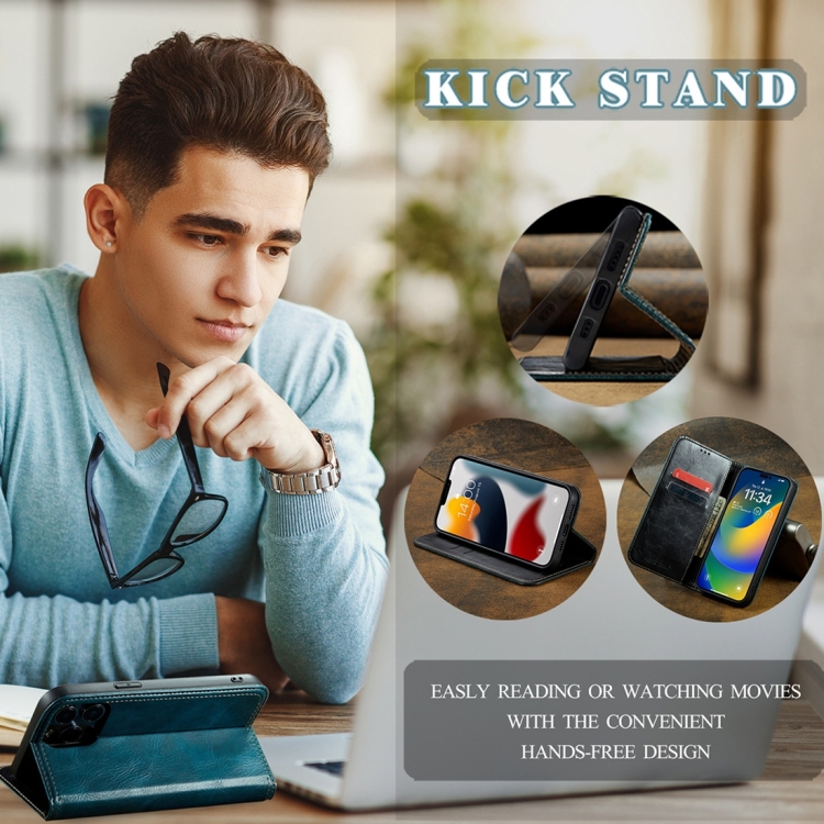 Funda de Cuero Fierre Shann Vintage Bark Texture para iPhone 15 Plus (Verde)