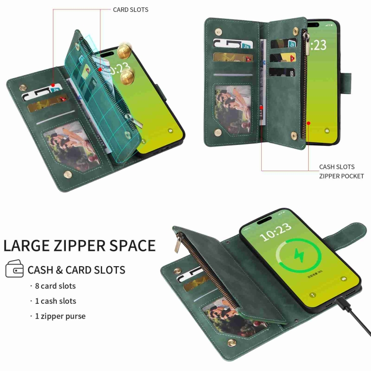 2. Ranuras para tarjetas multifuncionales, billetera, equipada con un cordón que se puede cruzar en diagonal, lo cual es conveniente para viajar.