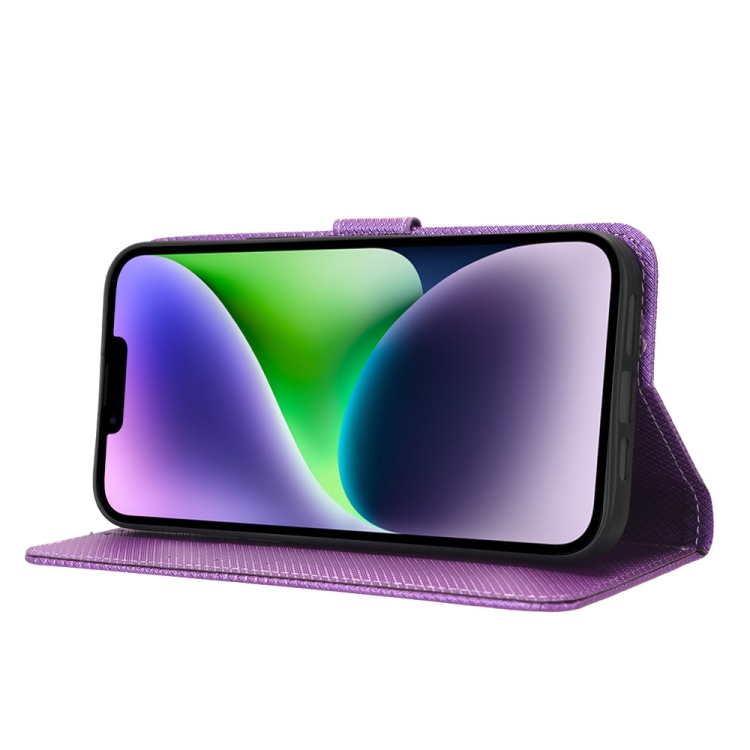 Funda de Cuero para iPhone 15 Plus con Textura de Diamante (Púrpura)
