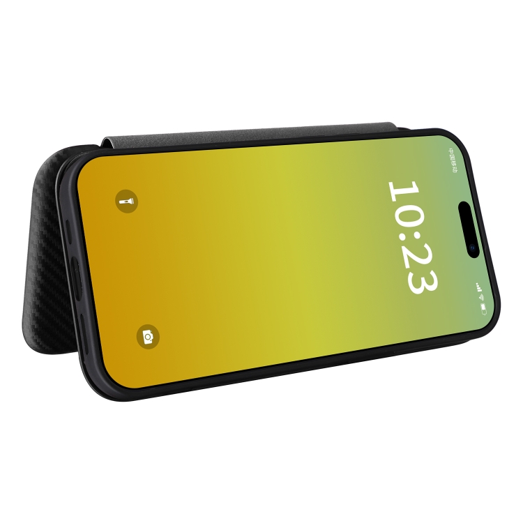 Funda para Teléfono iPhone 15 Plus Cuero Textura Fibra de Carbono (Negro)