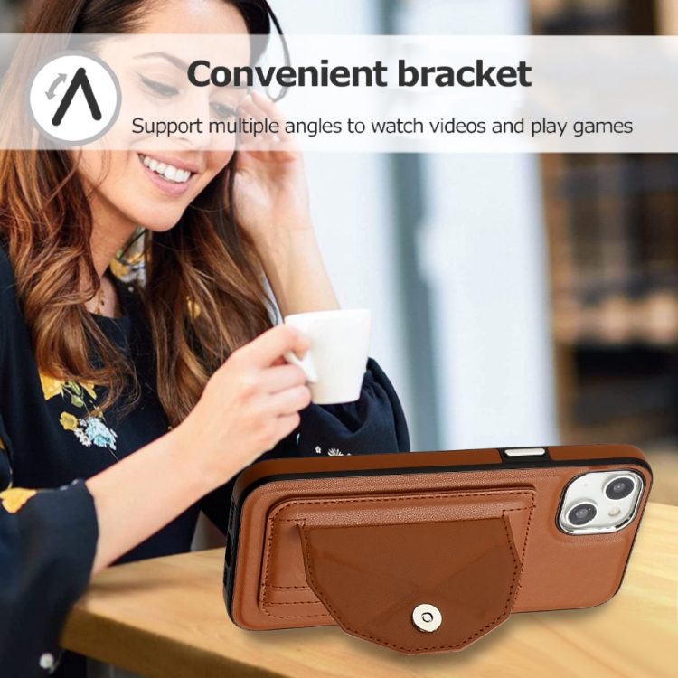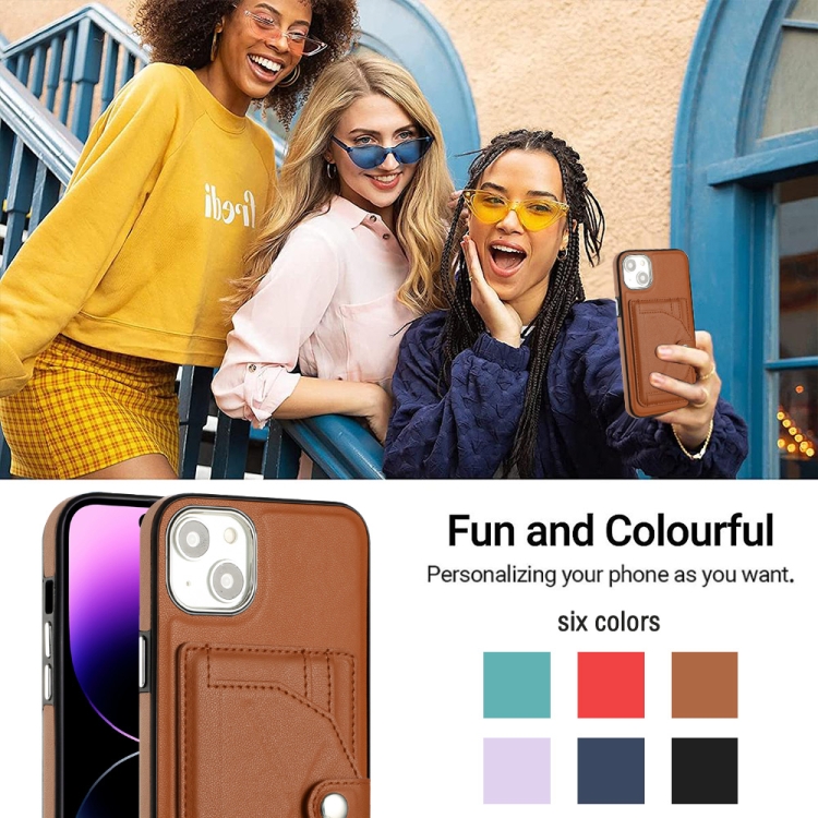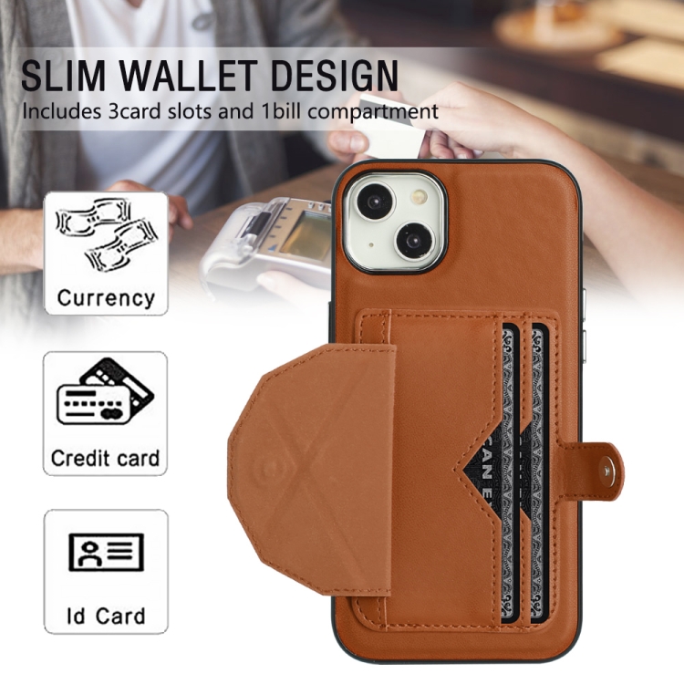Funda de Teléfono para iPhone 15 Plus Cuero a Prueba de Golpes con Tarjetero (Marrón)