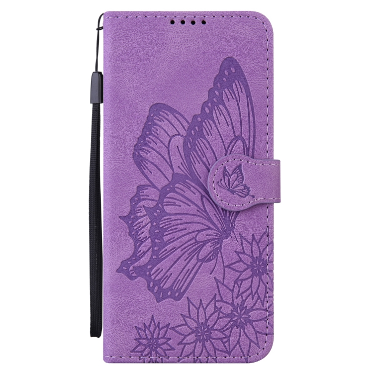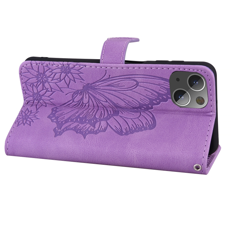 Funda de Teléfono iPhone 15 Plus Cuero Estampado de Mariposas Sensación de Piel Retro (Púrpura)