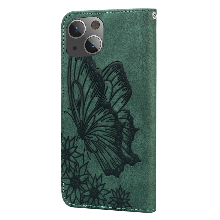 Funda de Teléfono iPhone 15 Plus Cuero Estampado Mariposas Sensación Piel Retro (Verde)