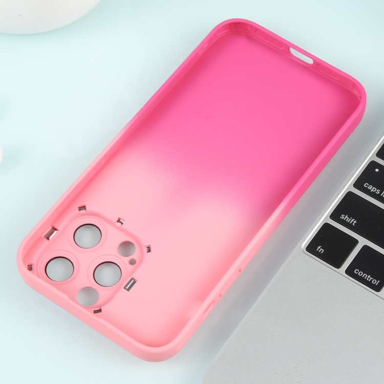 Funda de Teléfono iPhone 15 Plus Silicona Estrellada Degradada con Película de Lente (Rosa Rojo)