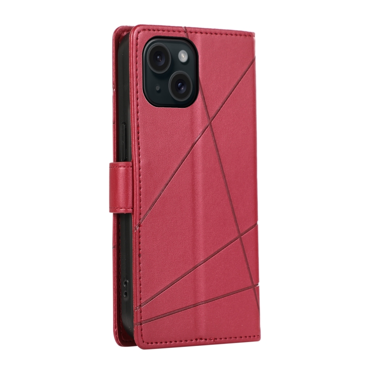 Funda para Teléfono iPhone 15 Plus con Línea en Relieve Textura Cuero Genuino PU (Rojo)
