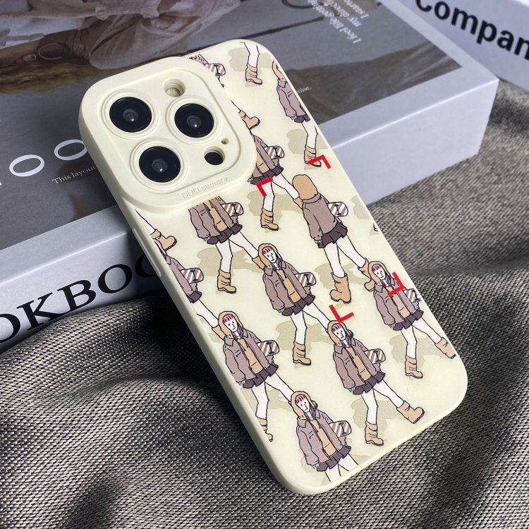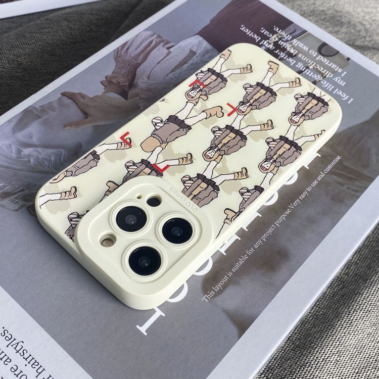 Funda para Teléfono iPhone 15 Plus Silicona Líquida con Patrón de Peatones (Beige)