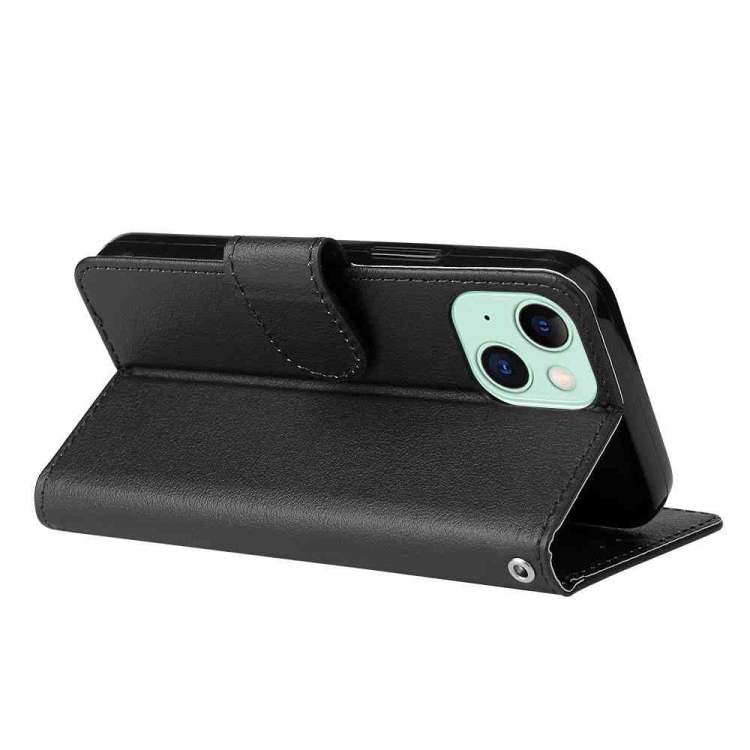 Funda para Teléfono iPhone 15 Plus Cuero Tapa Horizontal Multifuncional Tres Ranuras (Negro)