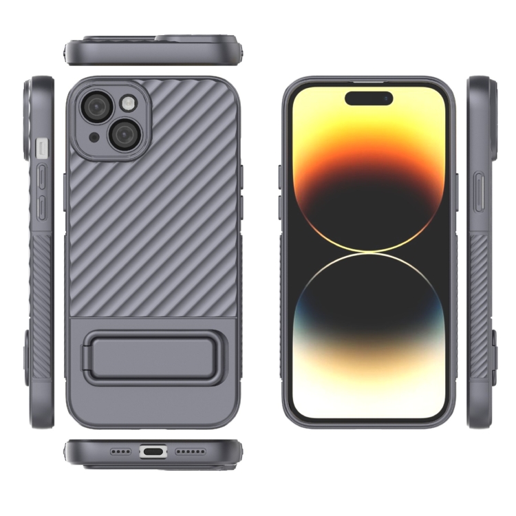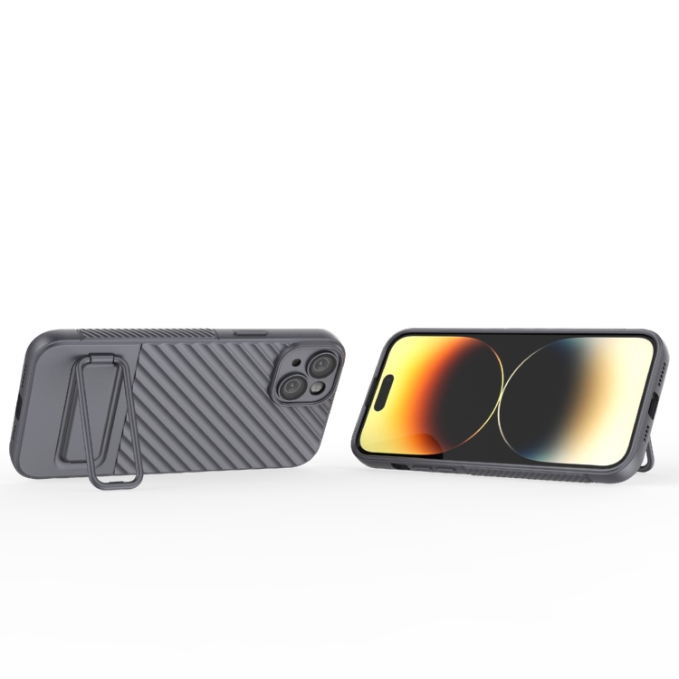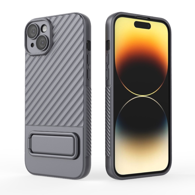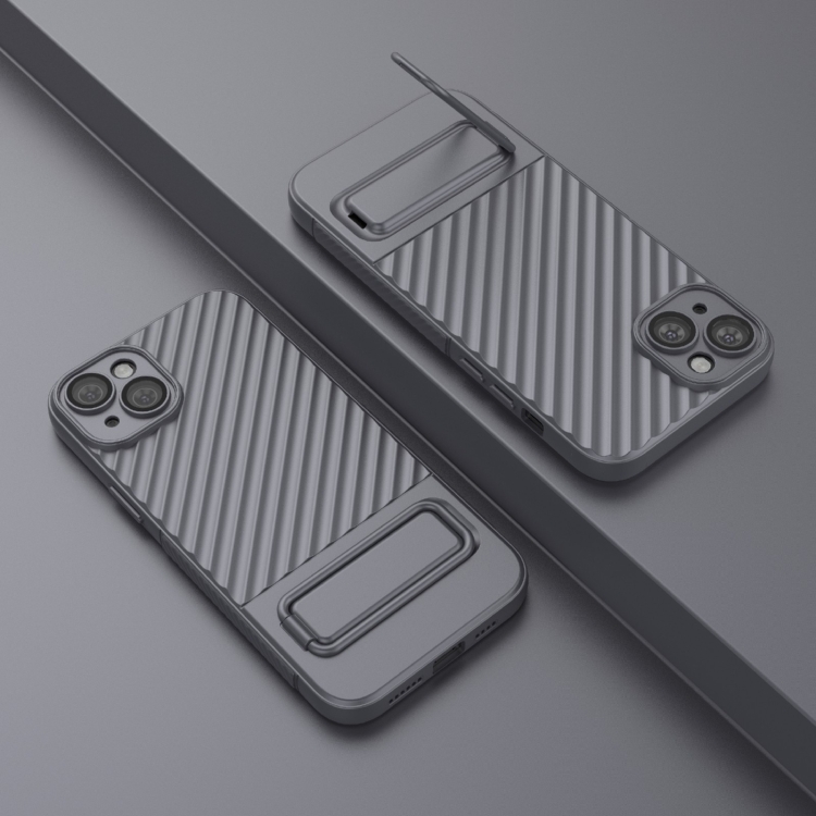 Funda para Teléfono TPU iPhone 15 Plus Textura Ondulada con Película para Lentes (Gris)